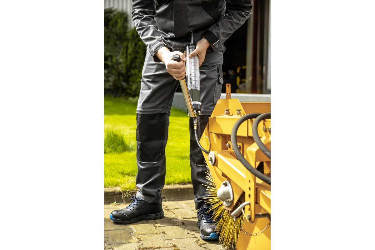 Męskie półbuty ochronne zgodne z klasą bezpieczeństwa S1 według normy ISO 20345:2011. Obuwie wykonane z wysokiej jakości materiału KPU sprzyja wygodzie i komfortowi użytkowania. Buty wyposażono w stalowy podnosek, który chroni palce stopy m.in. przed spadającymi przedmiotami, gruzem, narzędziami. Dzięki antypoślizgowej podeszwie buty doskonale sprawdzą się podczas chodzenia po nierównych i śliskich podłożach. Buty polecane w branży logistycznej, transportowej, w przemyśle samochodowym, w pracach remontowych oraz budowlanych. Świetnie sprawdzą się w zamkniętych pomieszczeniach (np. halach).
