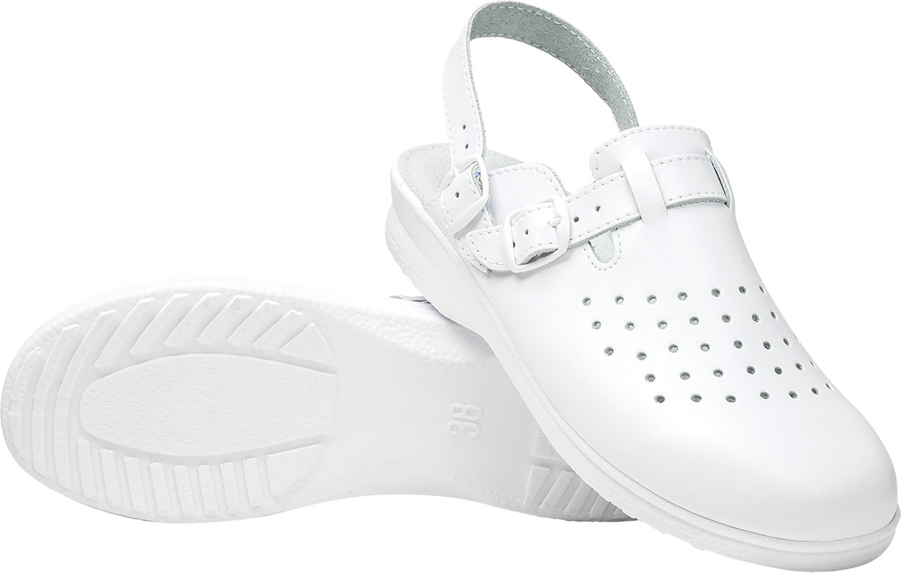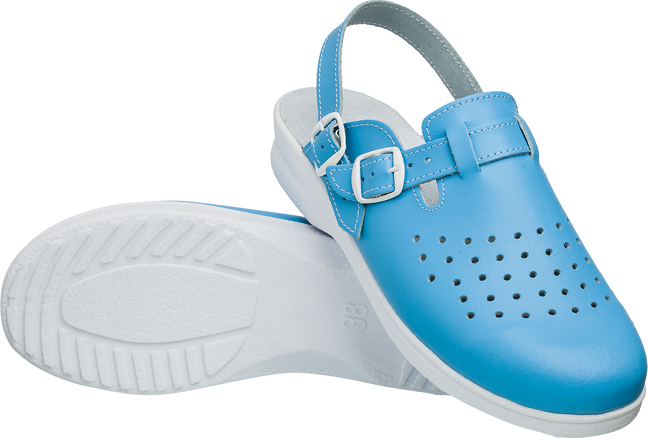 • wierzch perforowany ze skóry naturalnej z paskiem do regulacji tęgości, odporny na codzienne mycie i dezynfekcję