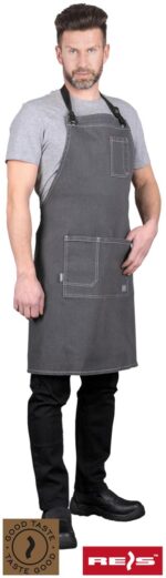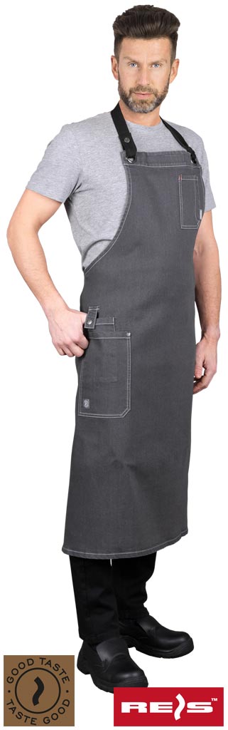 Fartuch ochronny wykonany z jeansu zakładany na szyję; GRANDE; Reis; Raw-Pol
