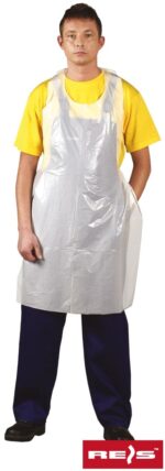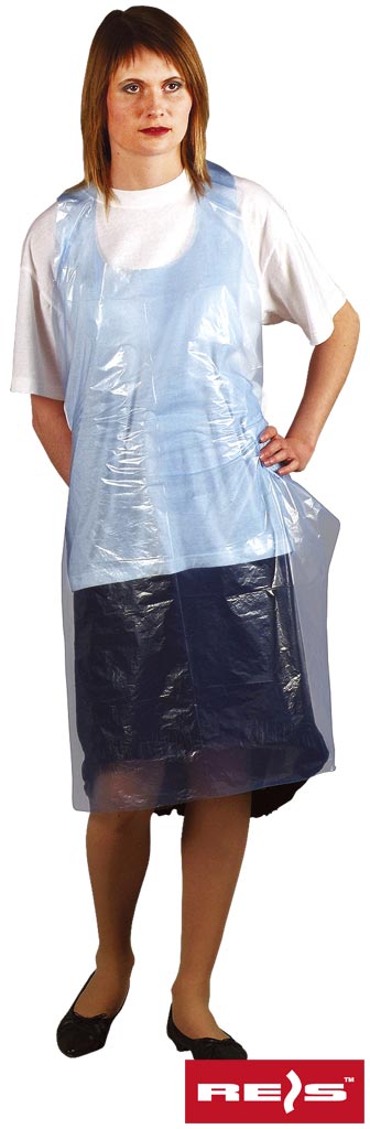 Fartuch przedni foliowy zakładany na szyję z wiązaniem z tyłu pleców.