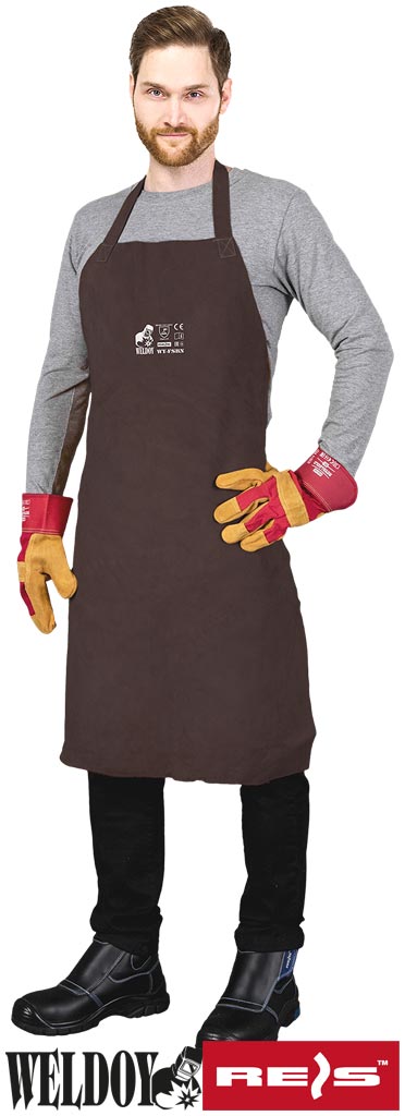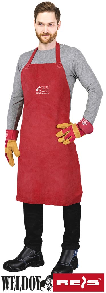 Fartuch spawalniczy skórzany przedni, zakładany na szyję.