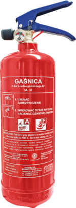 • gaśnica przeznaczona do gaszenia pożarów grupy ABF