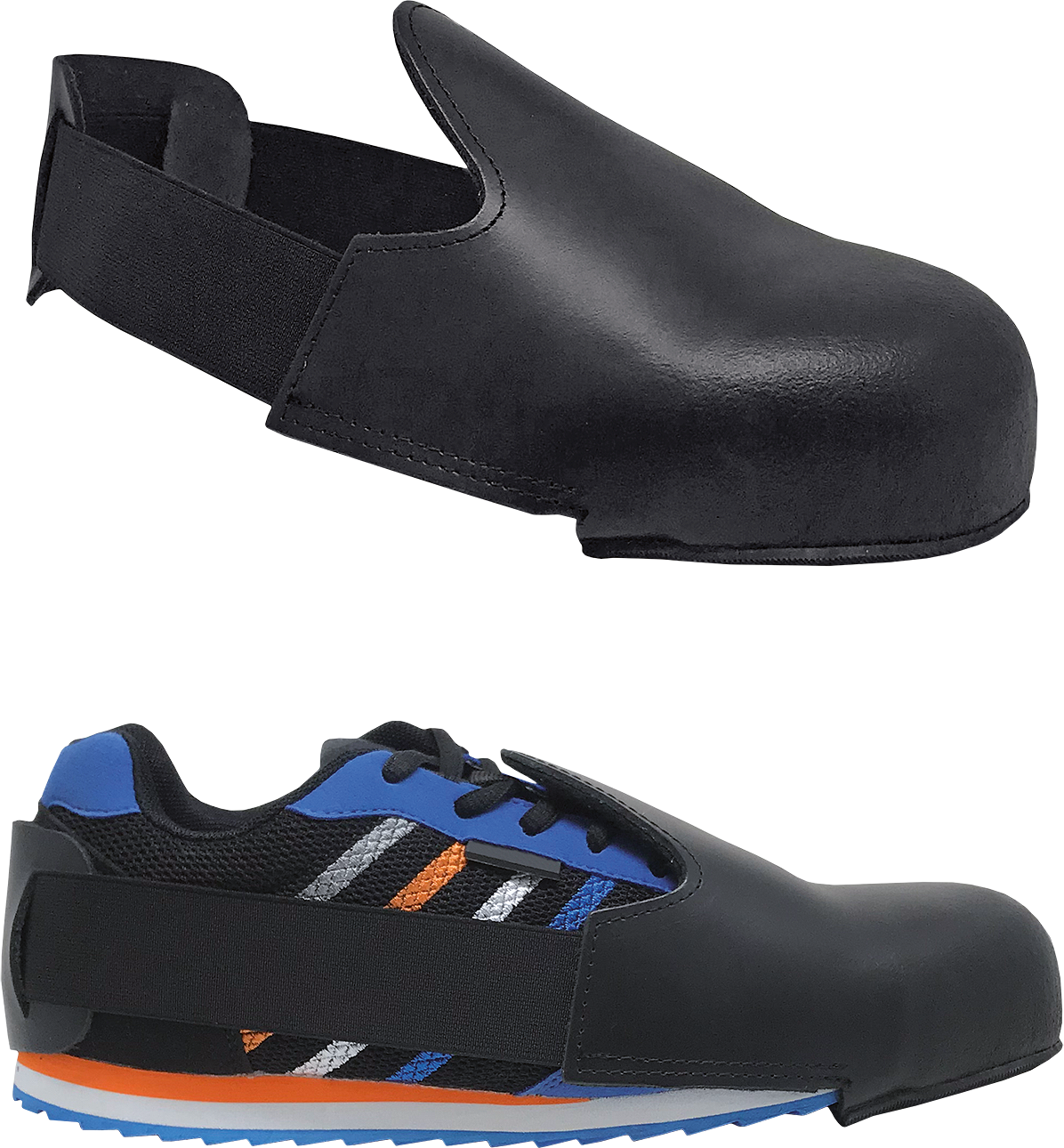 - posiadają metalowy nosek ochronny oraz rozciągający się gumowy pasek