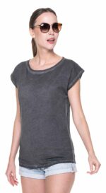 Opis: miękki i gładki materiał single jersey, barwiony metodą „cool-dyed”; elastyczny ściągacz; taśma wzmacniająca na ramionach; podwójne szwy
